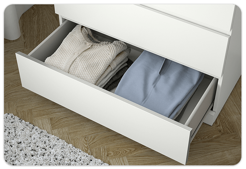 Ladičar Lumi dostupan je u verziji sa četiri ili pet ladica, što ga čini odličnim izborom za svaki prostor kojem je potrebna dodatna organizacija. Duboke i stabilne ladice omogućavaju uredno odlaganje odjeće, dokumenata i svakodnevnih sitnica, uz maksimalnu preglednost i lakoću korištenja.