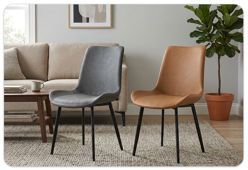 Stolice iz ovog seta dizajnirane su s naglaskom na udobnost i modernu estetiku. Ergonomski oblikovano sjedište i naslon od visokokvalitetne eko kože pružaju odličan oslonac tijekom dužeg sjedenja, dok glatka površina materijala omogućava jednostavno održavanje i čišćenje.