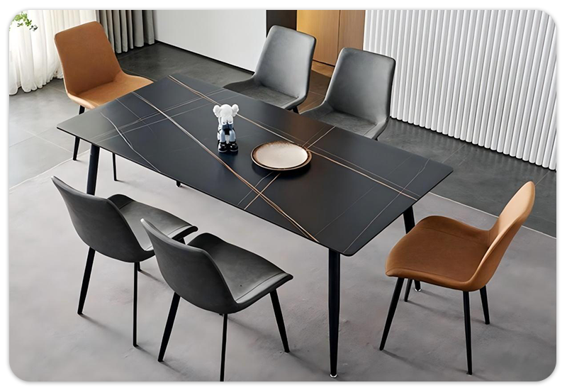 Keramička ploča je izdržljiva i jednostavna za održavanje, dok metalne noge osiguravaju stabilnost i dug vijek trajanja.